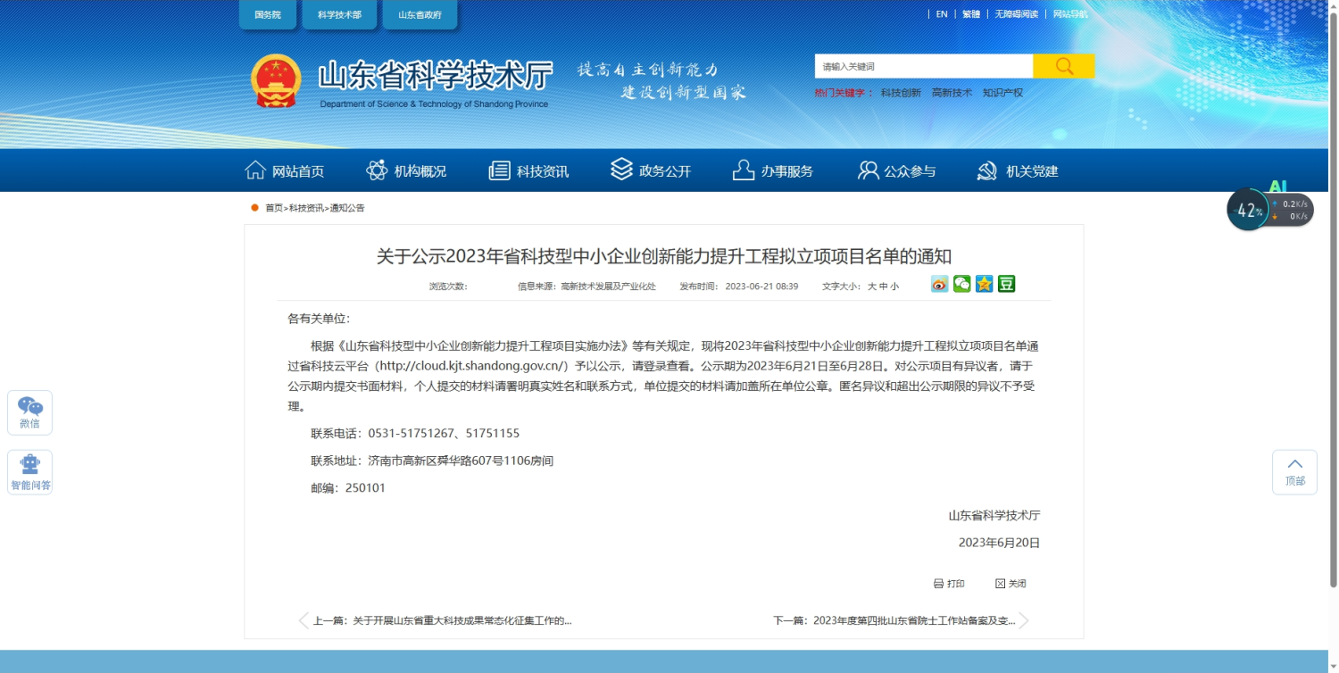 喜訊│山東匯海膜材料成功立項山東省科技廳科小提升工程項目